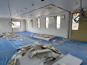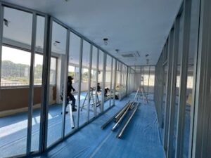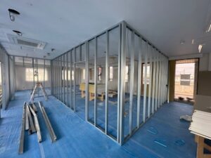 2025-09-26 / 最終更新日 : 2025-09-26 romio630 ブログ N学校様 内装工事 既設の間仕切りを解体し、新たに教室の間仕切り壁を設置させていただきました。 今回はLGS〜ボード〜クロス〜巾木まで施工させていただきました。